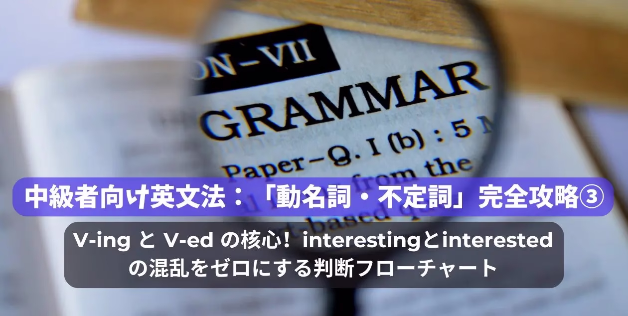 中級者向け英文法:「動名詞・不定詞」完全攻略③|V-ing と V-ed の核心!interestingとinterestedの混乱をゼロにする判断フローチャート