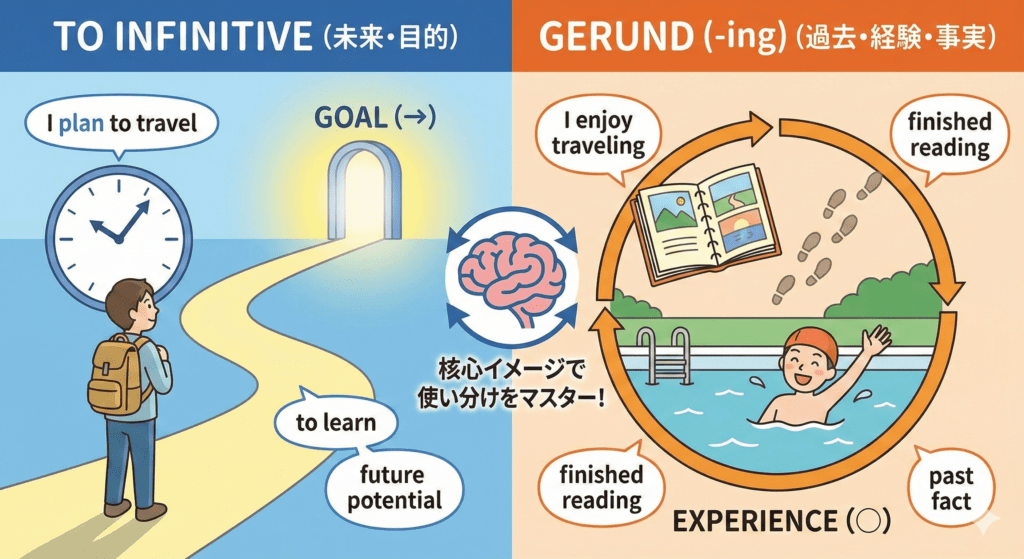 英語の動名詞・不定詞・分詞の使い分け完全ガイド|もう暗記に頼らない!動名詞と不定詞の使い分けを核心イメージでマスターする4ステップ