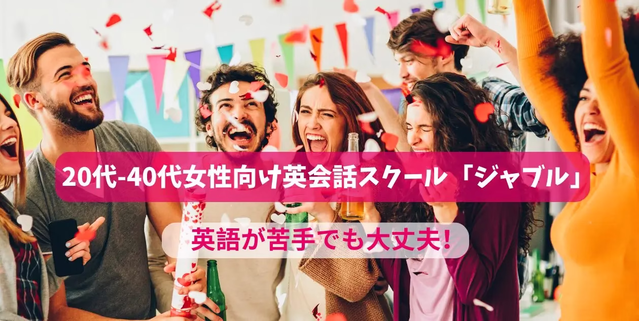 ジャブルは、「英語が苦手だけど話せるようになりたい!」という20代-40代女性にぴったりの英会話スクールです。少人数制でアットホームな環境、自由にスケジュールを組めるフリータイム制、イベントの充実など、楽しく学べる環境が整っています。