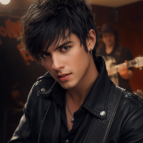 Kai, a guitarist with messy dark hair, was strumming an electric guitar while studying his reflection. Maya, a singer-songwriter with sharp eyes, was scribbling notes in her songwriting journal. Alex, a drummer with an infectious energy, tapped rhythms on the armrest of the couch.